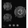 газовая на 3 конфорки, закаленное стекло, мощность: 6200 Вт, автоматический электроподжиг, газ-контроль, решетки: чугун, независимая установка, размеры (ШхГ): 45x51 см