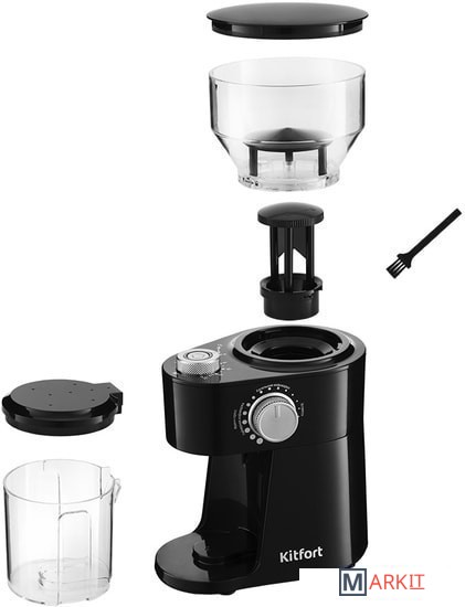 Контейнеры для молотого кофе и зёрен съёмные. Верхний жернов также съёмный для удобства очистки. Для чистки жерновов в комплекте идет маленькая щёточка.Длина шнура: 0.98 мРазмеры: 190x140x266 ммВес: 1.2 кг