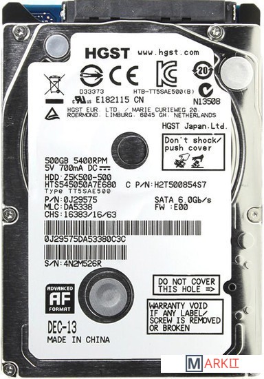 Markit » Жесткие диски » Жесткий диск HGST Travelstar Z5K500 500GB HTS545050A7E680